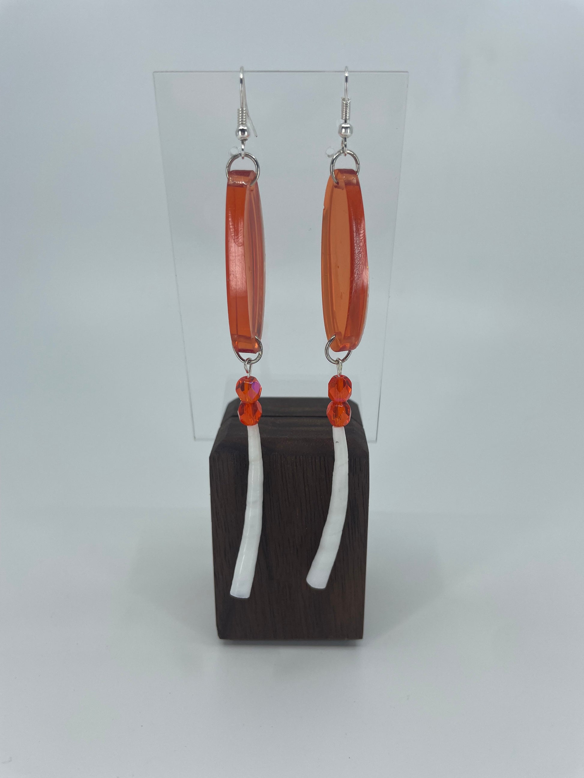Handmade orange colored resin with rondelle accents and dentalium dangles.